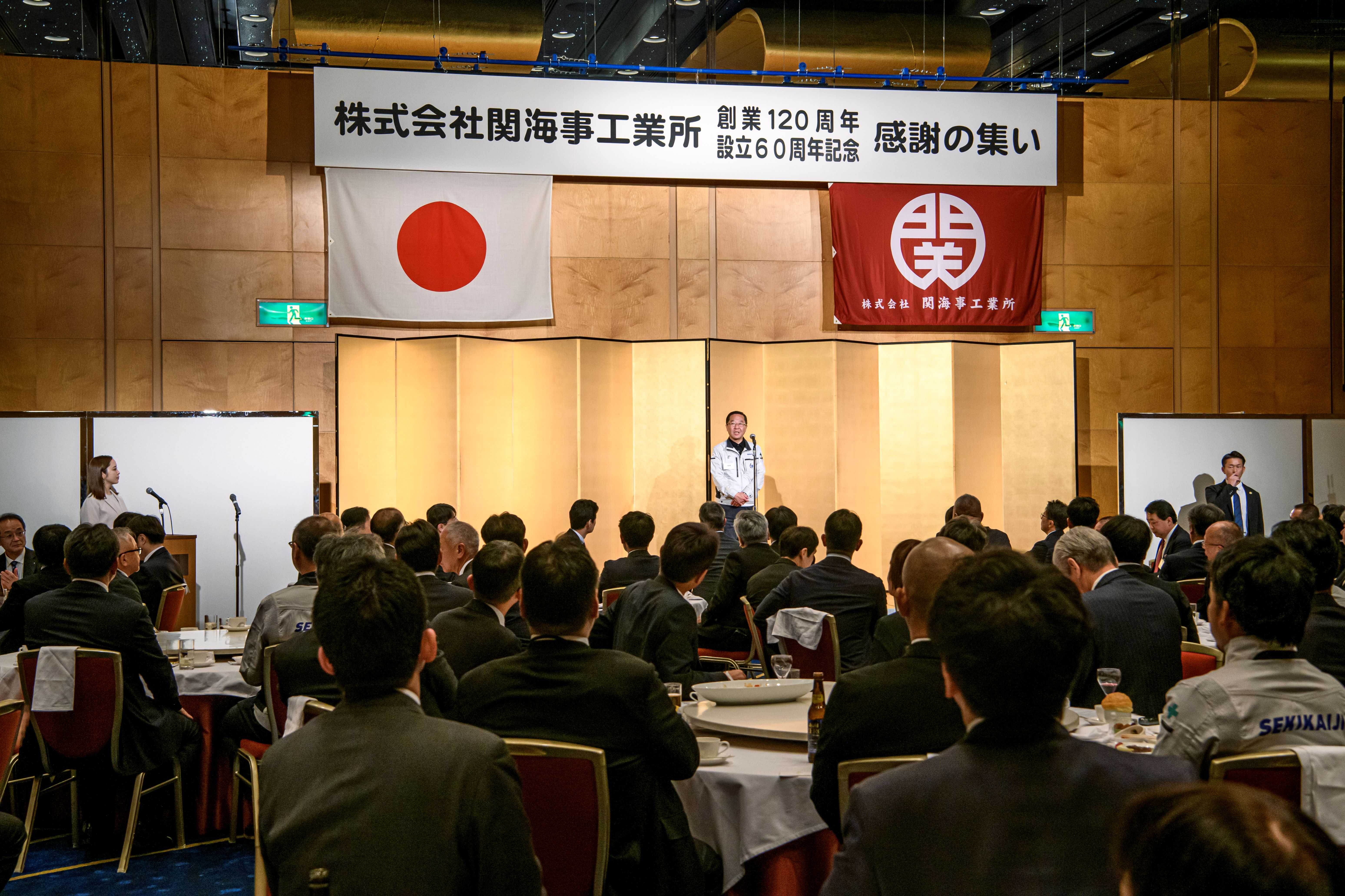 関海事工業所は、4月1日に創立120周年・設立60周年を迎えるにあたり、関係者の皆様への感謝の意を込めて去る3月27日(金)に感謝の集い(祝賀パーティー)を開催いたしました。